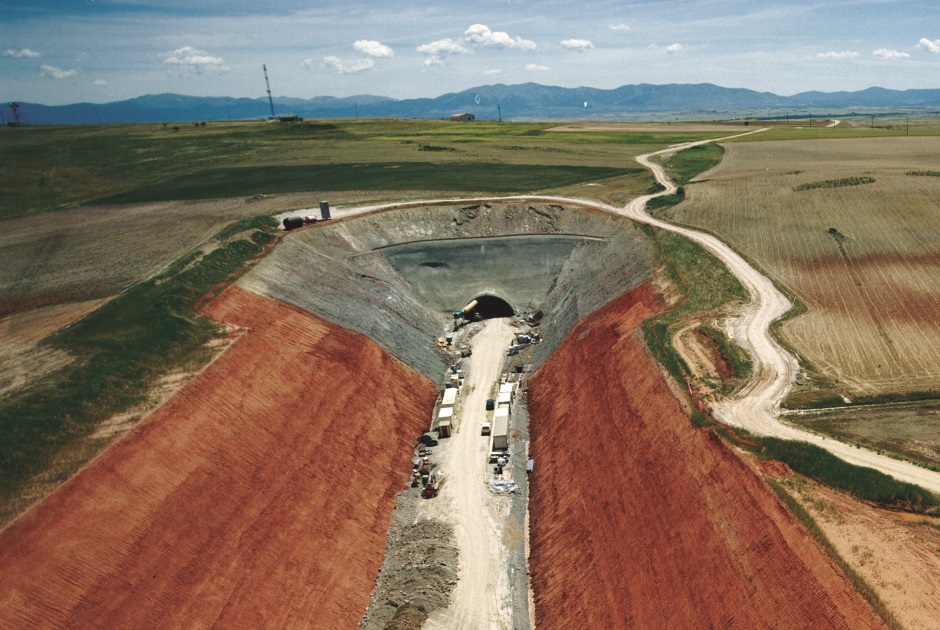 La excavación del túnel en mina, de 13,4 km de longitud y 8,50 m de diámetro interior, se ejecuta con dos dobles escudos de Ø 9,46 m, que se revisten con dovelas prefabricadas de 32 cm de espesor, conformando unos anillos-tipo con dovela de base y radio interior 8,50 m. Cada anillo-tipo se compone de 6 dovelas más la pieza de cierre de la clave.
