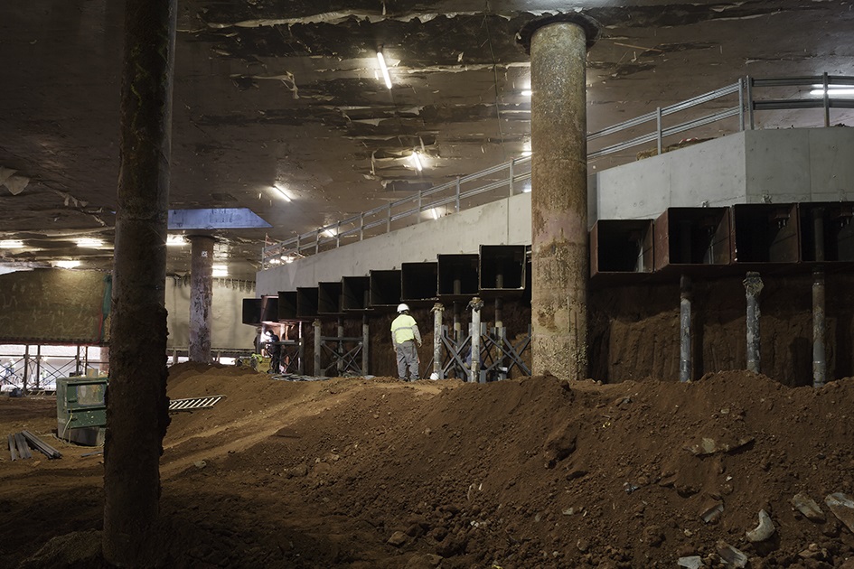 Se trata de una obra especialmente compleja desde el punto de vista de la hidrogeología. La presencia de edificaciones antiguas con cimentaciones superficiales situadas extremadamente cerca del recinto de excavación ha requerido la prolongación de las pantallas perimetrales hasta más de 30m de profundidad, a fin de empotrar la punta dentro de un estrato impermeable formado de 4m de espesor y no inducir asentamientos en ellas que pongan en peligro su integridad. Durante la obra se ha llevado a cabo un control exhaustivo de las edificaciones existentes, así como una monitorización de la evolución de los niveles freáticos dentro y fuera del recinto estanco de la obra para asegurar la impermeabilidad del vaso.