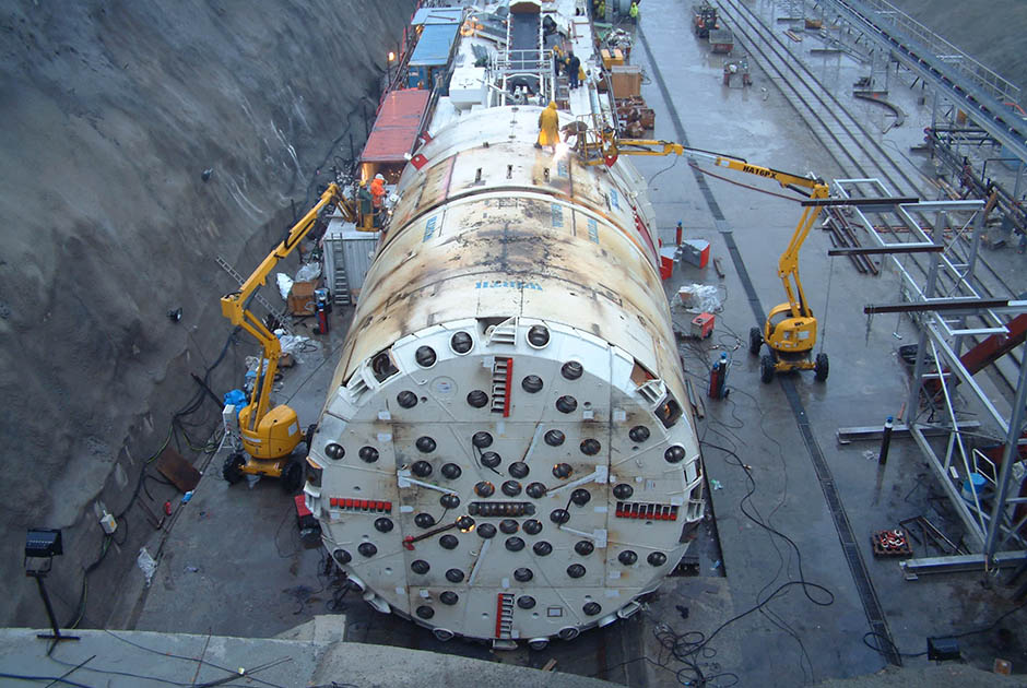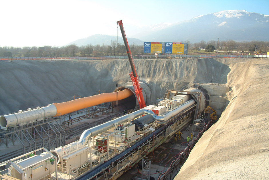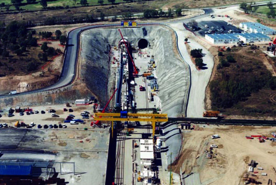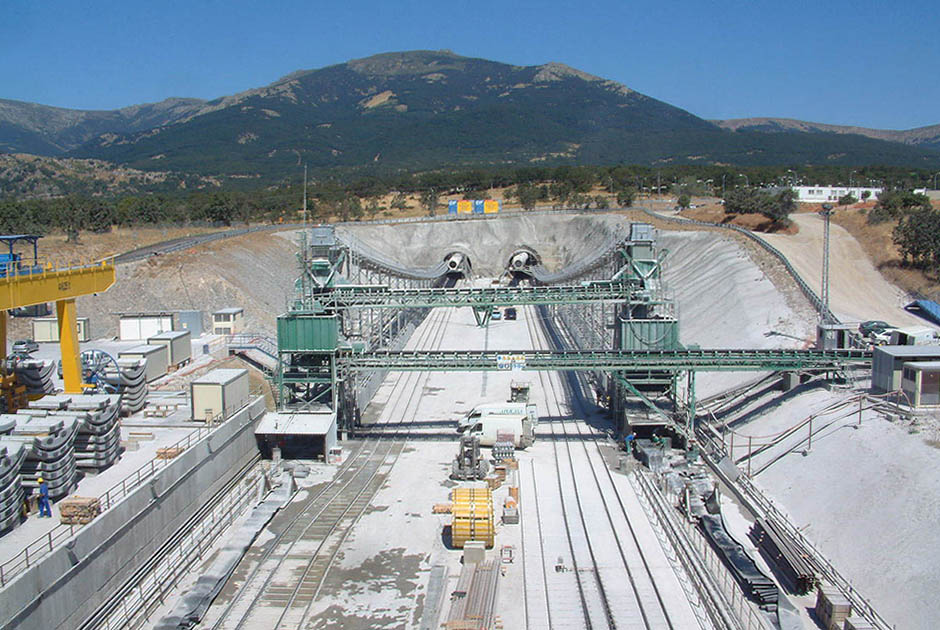 La excavación del túnel en mina, de 13,4 km de longitud y 8,50 m de diámetro interior, se ejecuta con dos dobles escudos de Ø 9,46 m, que se revisten con dovelas prefabricadas de 32 cm de espesor, conformando unos anillos-tipo con dovela de base y radio interior 8,50 m. Cada anillo-tipo se compone de 6 dovelas más la pieza de cierre de la clave.
