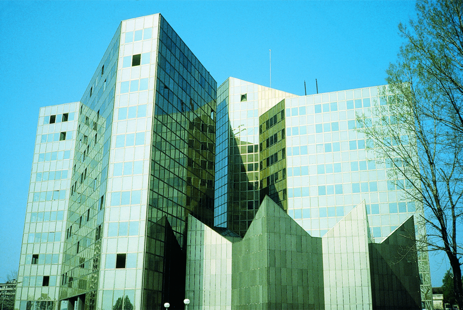 The total built area is 35,000 m2 with twelve floors above ground level. It was the pioneer in Bulgaria in the use of diaphragm walls in the foundations, three levels below ground for parking, voided concrete slabs and curtain walls on the façades.