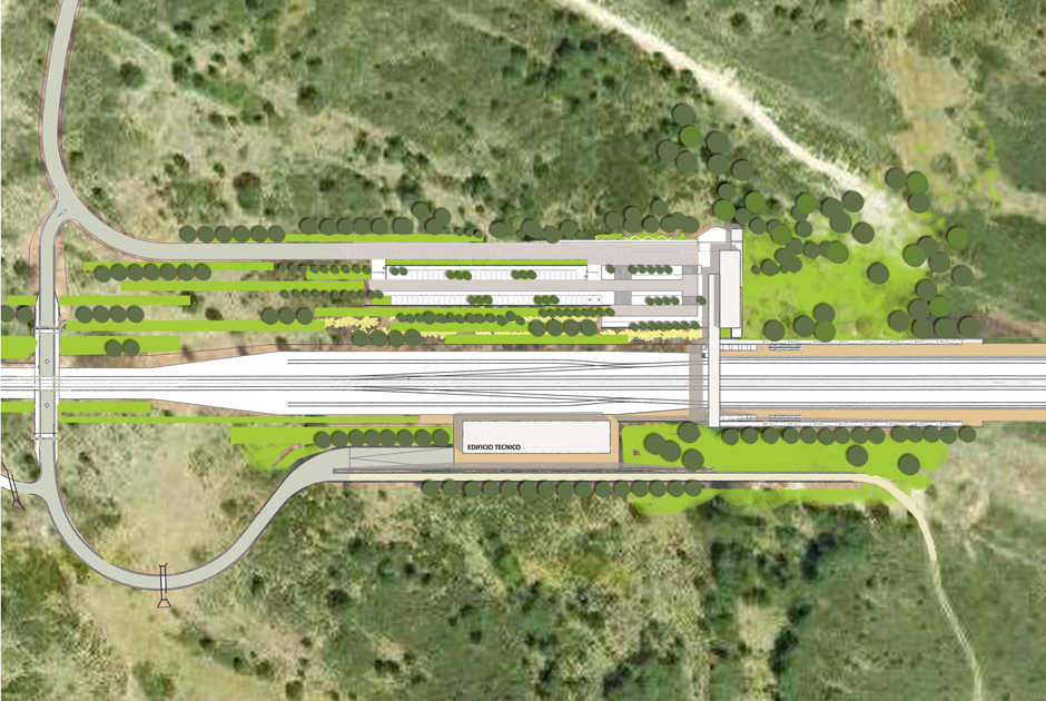 Thus the choice and determination of the surroundings in which to locate the station, its orientation and layout were determining factors in the planning of the solution. The entire action is focussed on and near the inhabited areas which allows movements to be reduced, the infrastructures in the area to be used and the possible effects to be reduced. The idea is to rationalise the implementation of the roads in the area so that it is as orderly as possible and searching for the greatest integration and enhancing access to the station for public transport, pedestrians and cyclists.