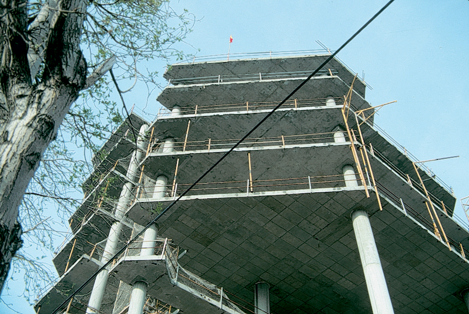 The construction of this office building was one of the first applications of the technique of slabs post-stressed with non-adherent cables in the field of building in Spain.